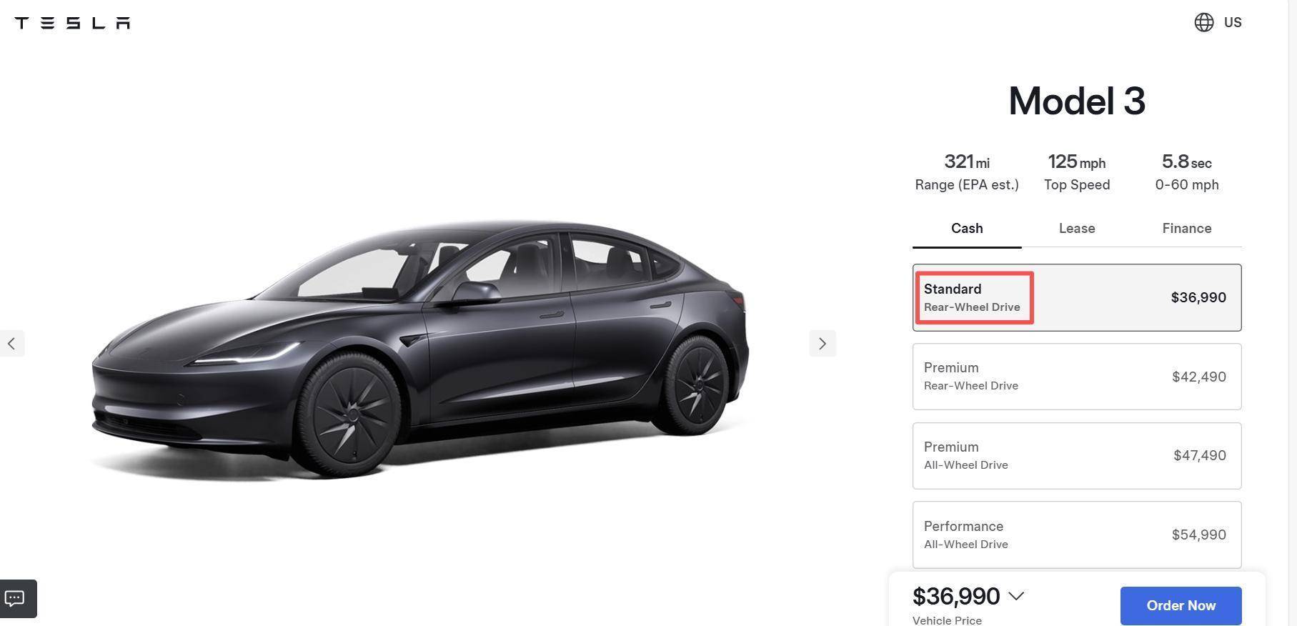 目前特斯拉Model Y标准版与Model 3标准版在美国官网已同步开放预订,交付时间预计为2025年12月至2026年1月。而在售价方面,特斯拉Model Y标准版售价39990美元(约28.4万元),较老款降价5000美元;Model 3标准版36990美元(约26.3万元),降价5500美元,均突破4万美元价格关口。