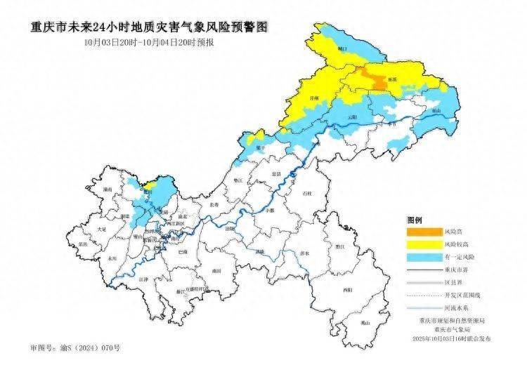 10月3日16时,重庆市规划和自然资源局、重庆市气象局联合发布全市地质灾害气象风险预警。