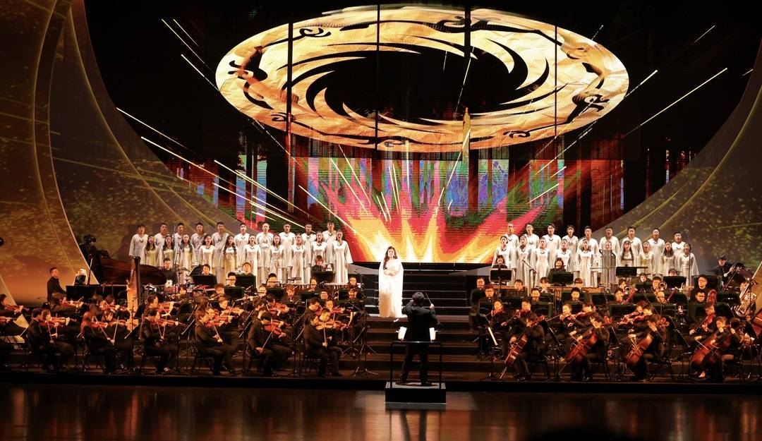 11月29日晚,成都东安湖大剧院,在音乐的牵引下,太阳神鸟的图腾被再度唤醒。作为第31届“蓉城之秋”成都国际音乐季的闭幕演出,音乐剧《金沙》特别版以交响乐、戏剧与舞蹈交融的舞台制作,再现那段沉睡三千年的古蜀文明,也为本届音乐季画上了圆满句号。